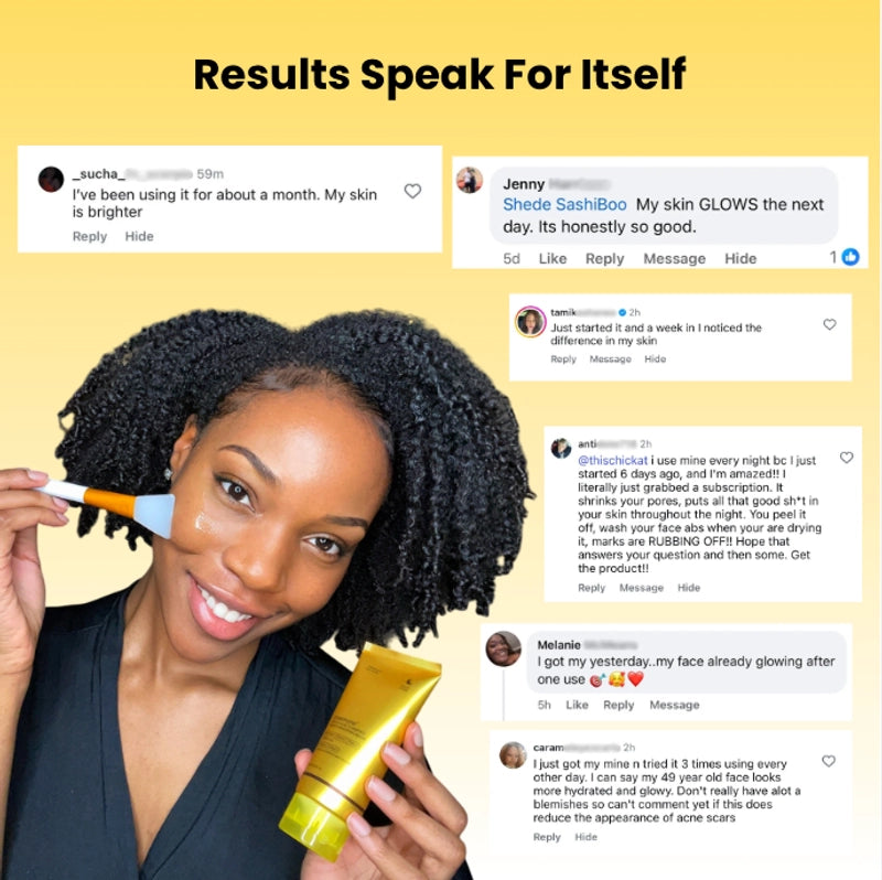 Unveil your skin's true luminosity with our overnight wrapping mask. Expertly formulated with our Acid, Turmeric, and Retinol, it gently rebalances melanin for a visibly spotless, even-toned glow by morning.